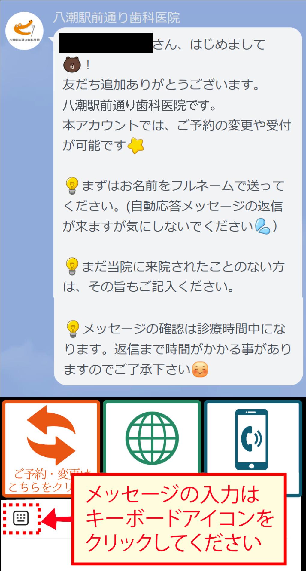 また、基本的に診療時間中の返信となりますため、お時間を頂く事があります。あらかじめご了承ください。