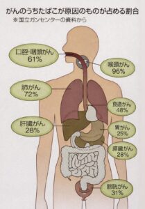 また、タバコの煙の中には、約4,000種類の化学物質が含まれ、そのうちの約200種類が有害物質で、発がん物質が約70種類と言われていています。